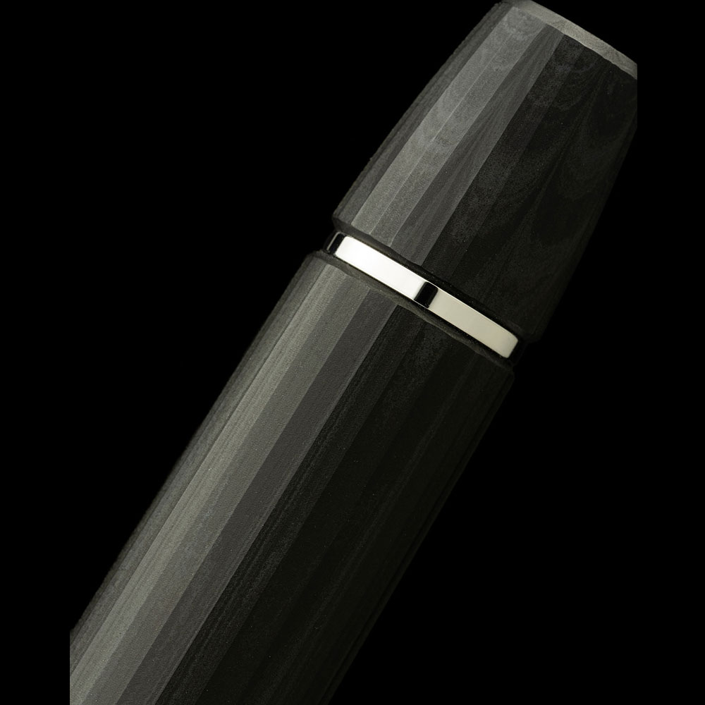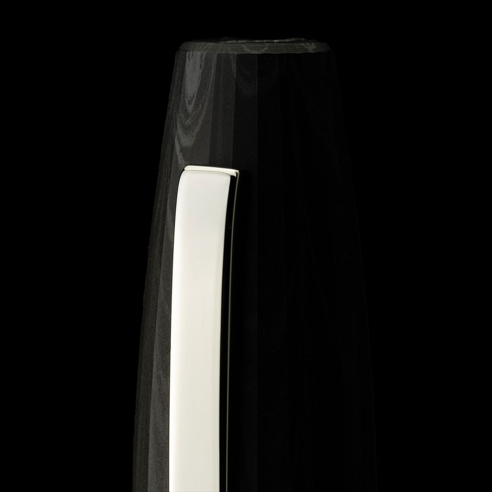 Der FLOW Dimensione ist aus mattem Ebonit gefertigt, einem lebendigen, tiefgründigen Material, das die Wärme dessen speichert, der es in den Händen hält und bringt diese Entwicklung durch Farbe und Licht zum Ausdruck. Mit handwerklicher Geduld gedrechselt, vermittelt das Ebonit beim Anfassen ein warmes, fast organisches Gefühl: ein Material, das sich im Laufe der Zeit unmerklich verändert und die Spuren des Gebrauchs als Zeichen der Zugehörigkeit annimmt.