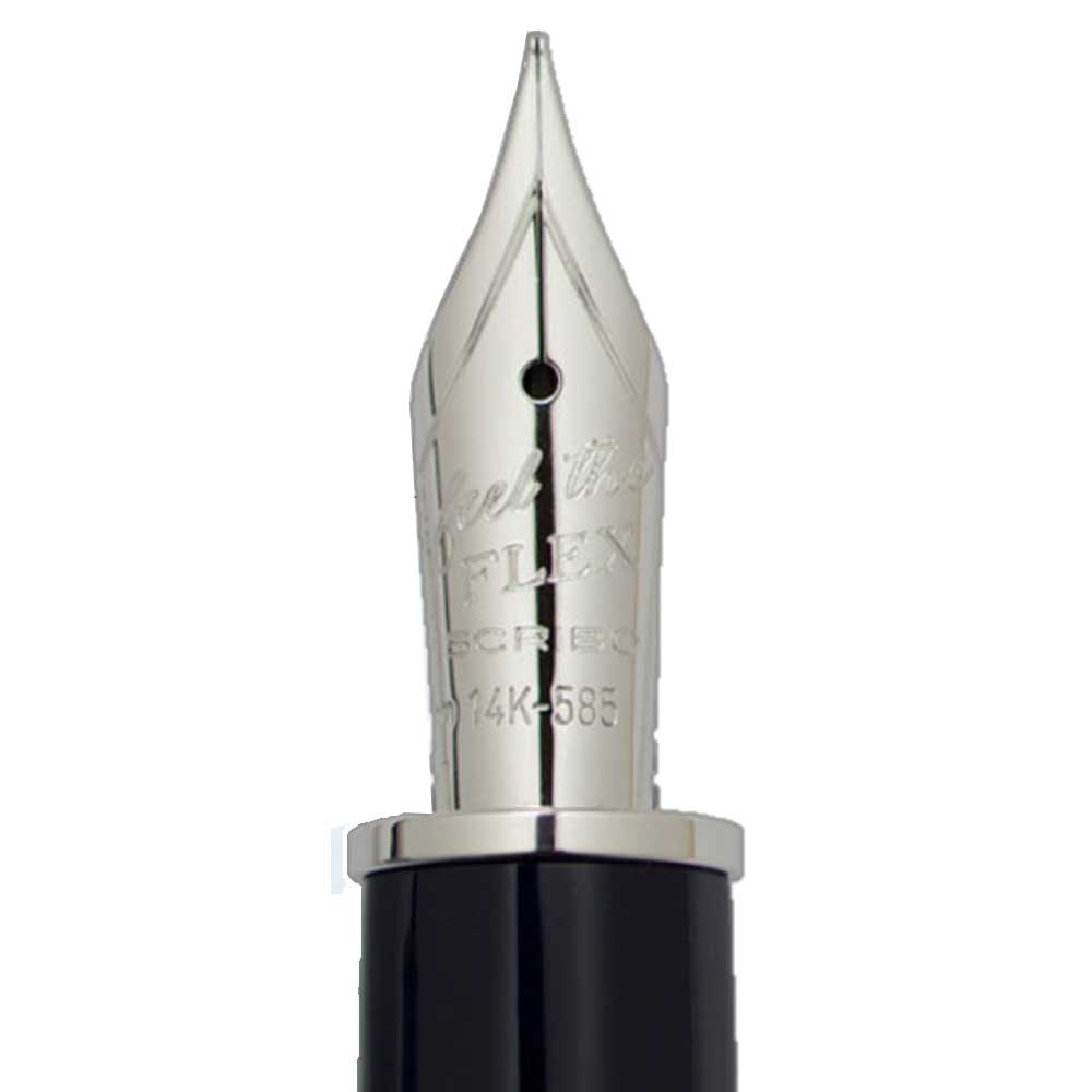 Die Federn und der Tintenleiter, die Herzstücke eines jeden Füllhalters, entsprechen denen von OMAS und bieten einen einzigartigen Schreibkomfort. Derzeit werden 18-K Goldfedern in vier Federbreiten (EF, F, M und B) sowie 14-K flexible Federn in EF, F, M und B angeboten. Insbesondere die weichen und überaus angenehmen Flexfederrn sind faszinierend und einigartig. Mit Druck geschrieben, wird die Strichstärke um zwei Federstärken breiter. Der Tintenleiter ist, wie bei OMAS, aus Ebonit gefertigt.