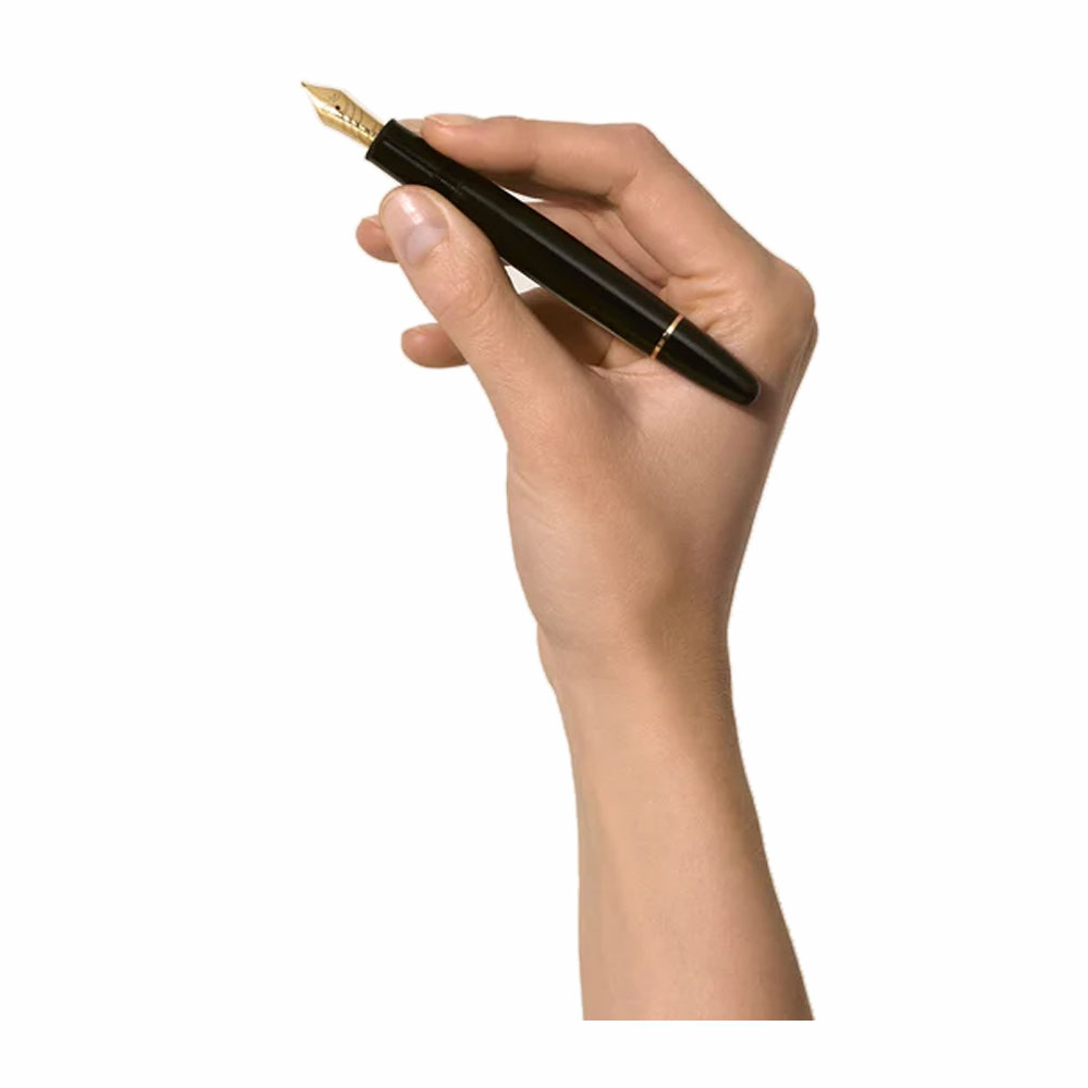 When applied to the paper at an angle of approx. 45° degrees, the Montblanc Curved Nib conjures up a medium ("M") vertical line width and a double-width ("BB") horizontal line width. As the nib's angle is increased, the vertical and horizontal strokes become progressively finer, culminating in a fine ("F"), even stroke at an angle of approx. 90° degrees. Extra fine strokes ("EF") can be produced when the nib is written upside down.