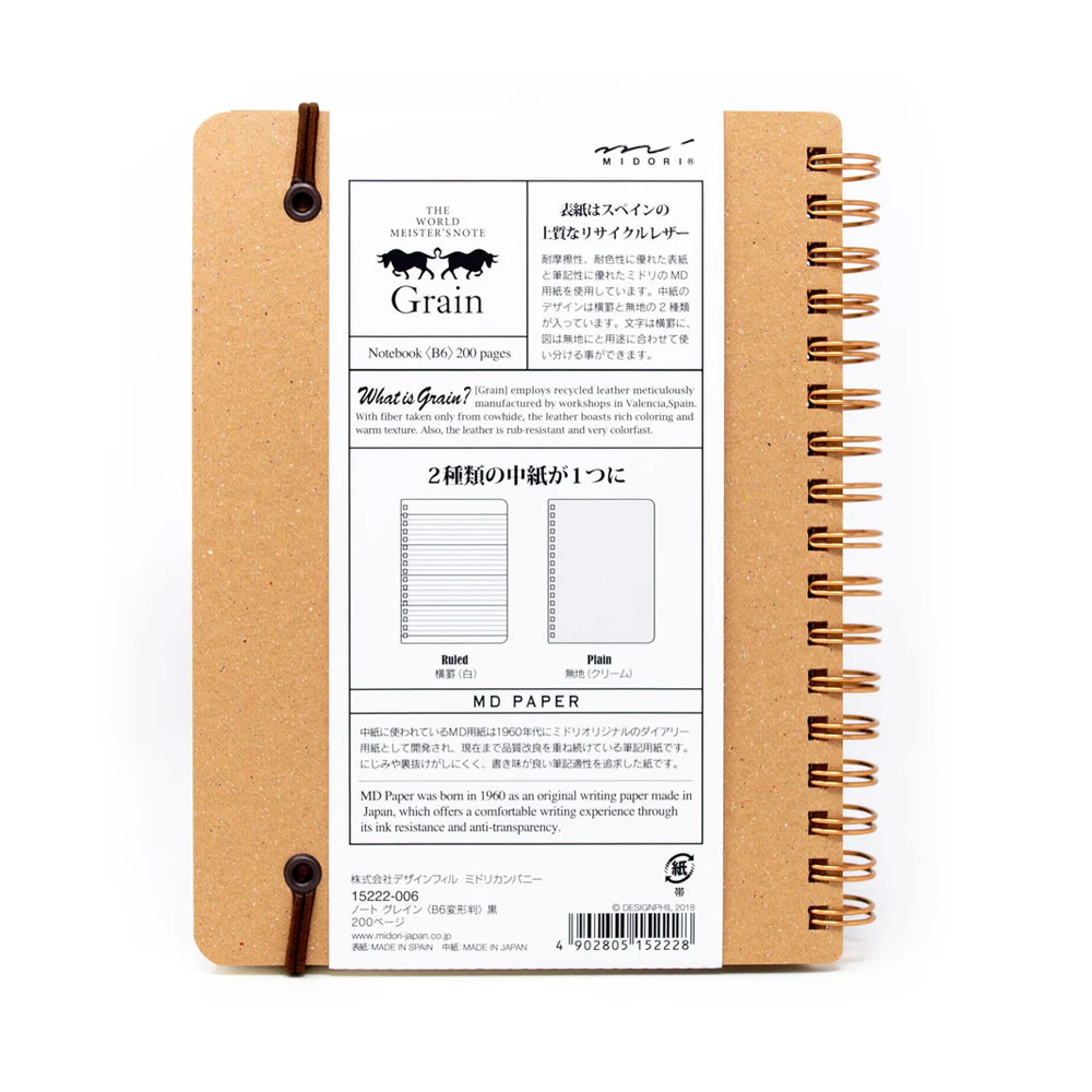 Midori Ring Memo Grain B6 Dark brown